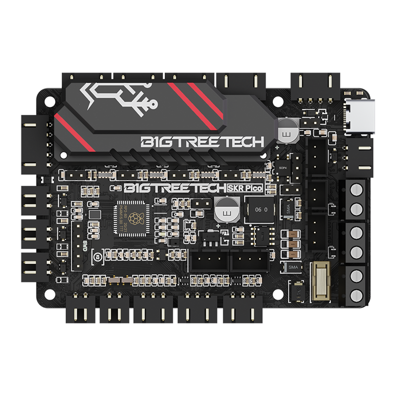 SKR Pico 是一块专门为 Voron 0 系列设计的板子。可以直接和 Raspberry Pi 系列直接堆叠安装。减少所需要的安装空间。